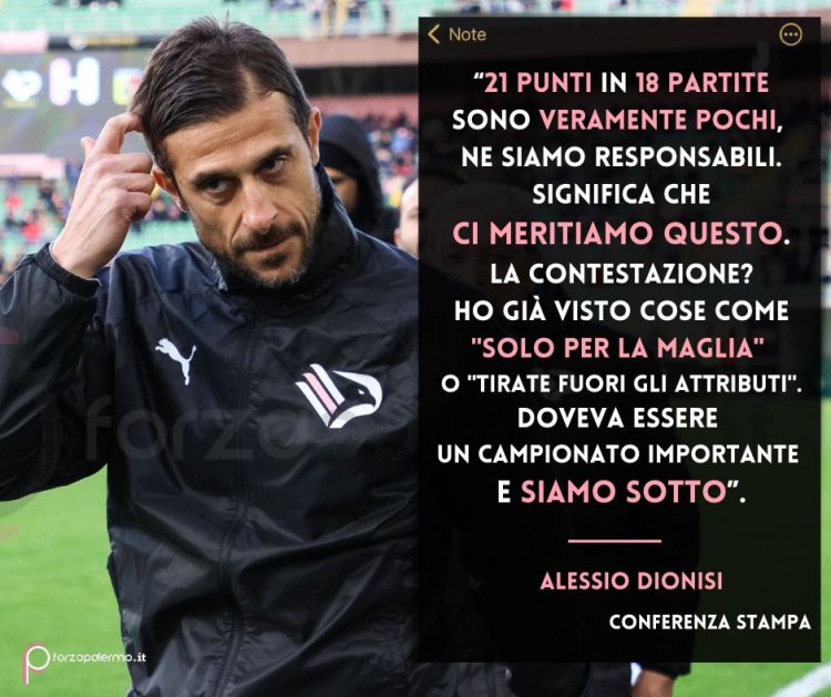 "Anche contro il Catanzaro l'ambiente era un po' particolare, ma non è la prima volta per me. Ho già visto cose come "Solo per la maglia" o "Tirate fuori gli attributi". Sappiamo che doveva essere un campionato importante e siamo sotto. La spaccatura è dovuta tutta ai risultati, dai risultati dipende tutto. Ai ragazzi posso rimproverare ben poco, sono consapevole che le cose non stanno funzionando come vorremmo. La squadra ha voluto restare assieme anche il giorno di Natale, lo facciamo per noi.